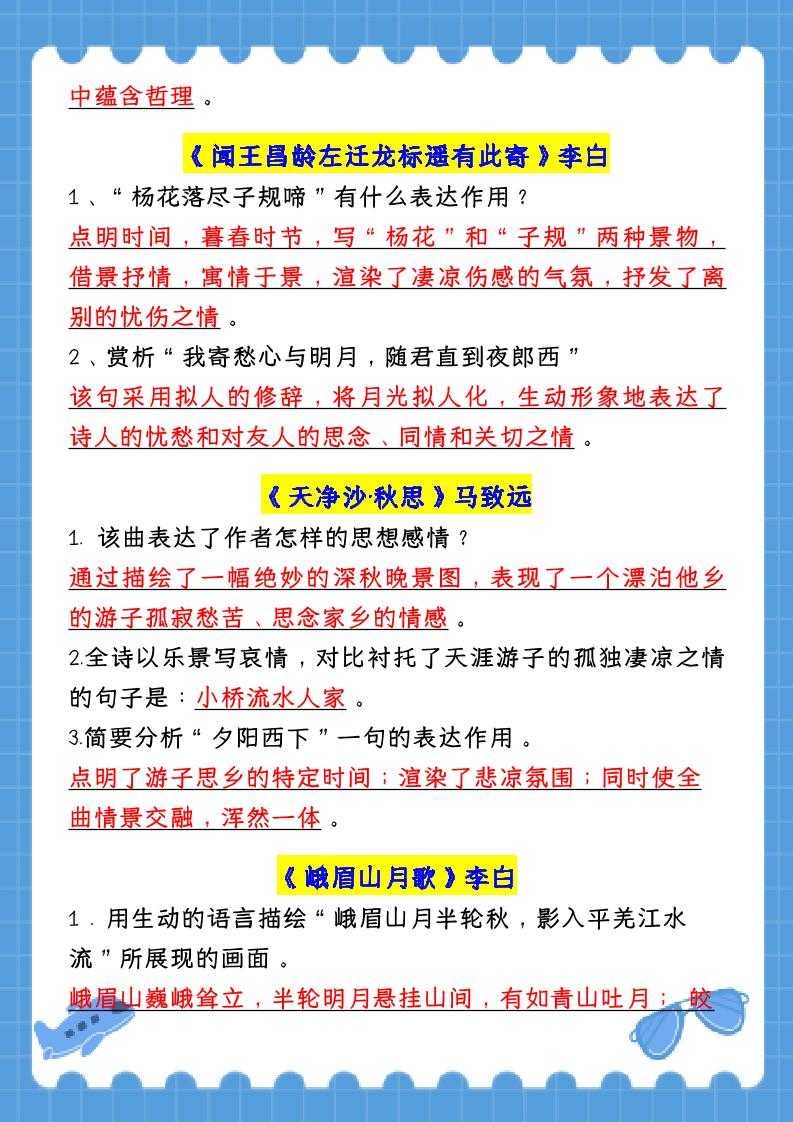 【2025秋新版】七年级语文上册:全册【古诗词赏析】专项练习(含答案) 【2025秋新版】七年级语文上册:全册【古诗词赏析】专项练习(含答案)