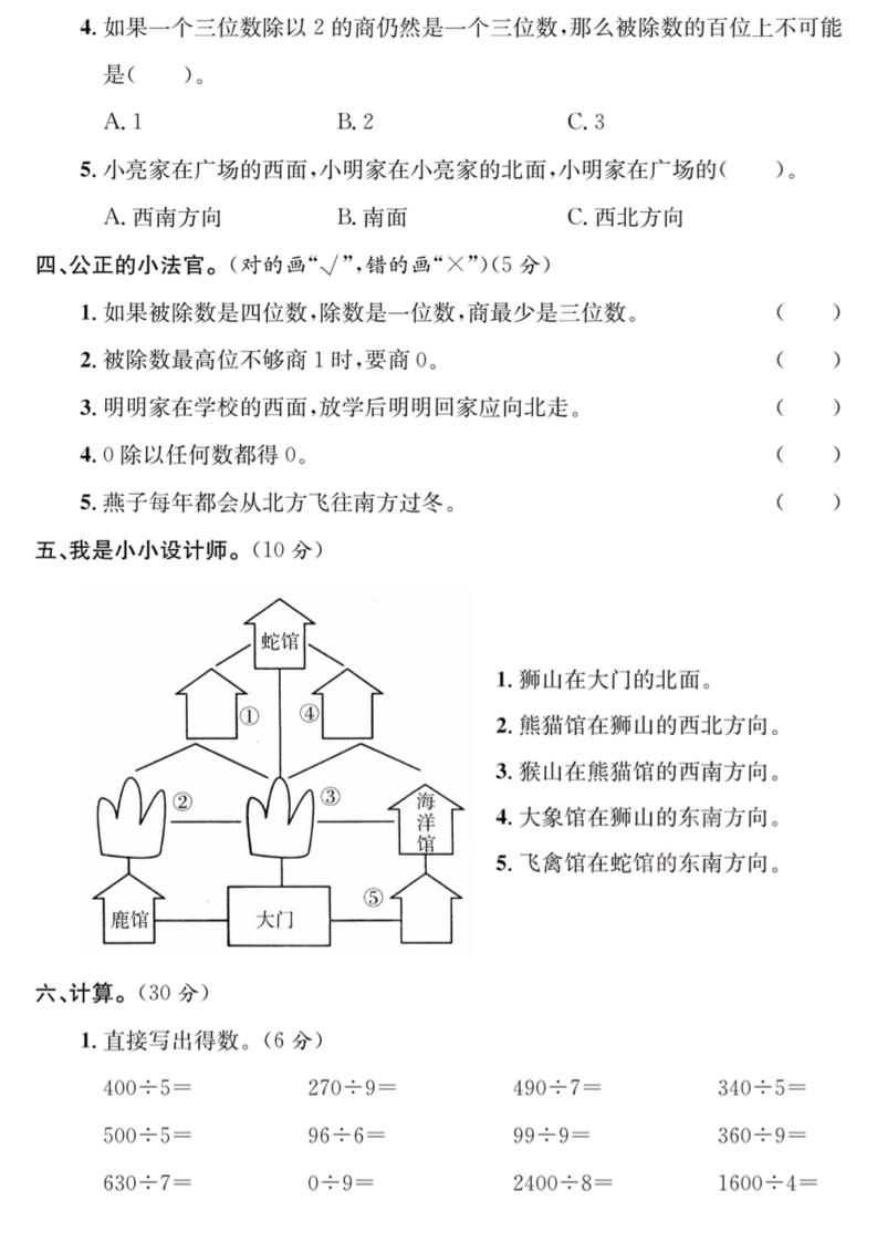 第一次月考检测综合卷三下数学人教版 第一次月考检测综合卷三下数学人教版