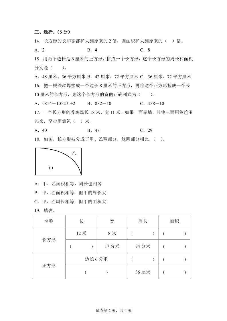 青岛63版数学三年级下册第五单元《长方形和正方形的面积》综合能力检测卷 青岛63版数学三年级下册第五单元《长方形和正方形的面积》综合能力检测卷