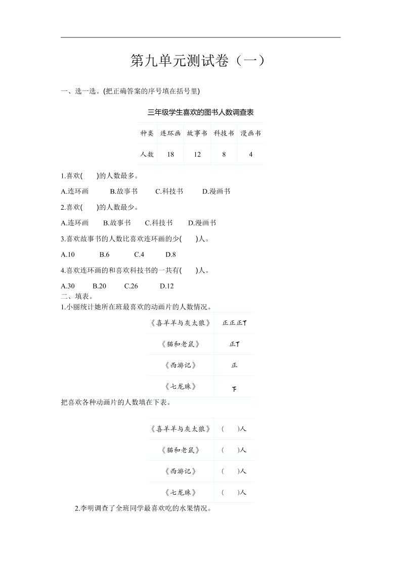 三下苏教版数学第九单元检测卷-1 三下苏教版数学第九单元检测卷-1