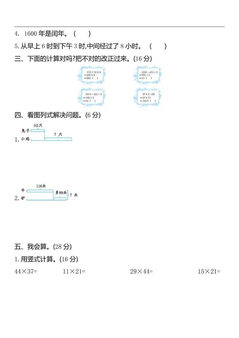 三下苏教版数学期中测试卷-2 三下苏教版数学期中测试卷-2