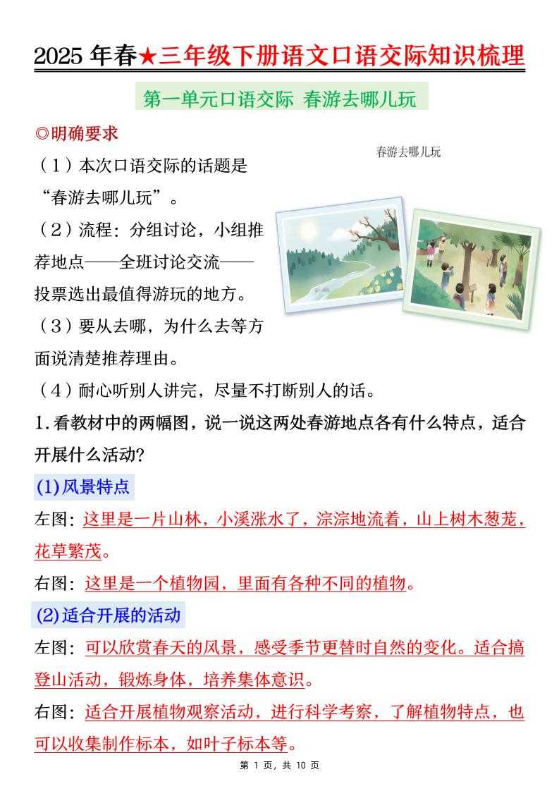 25春三下语文口语交际知识梳理(10页) 25春三下语文口语交际知识梳理(10页)