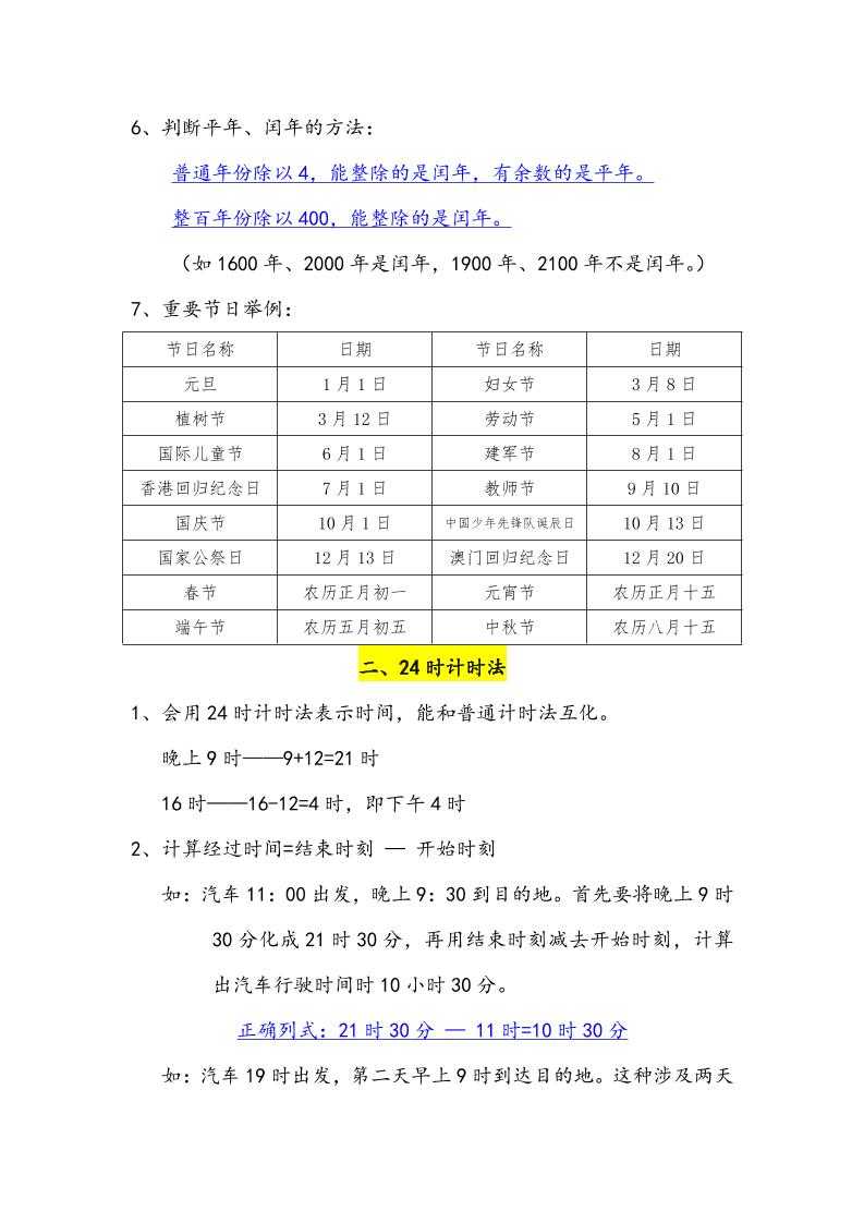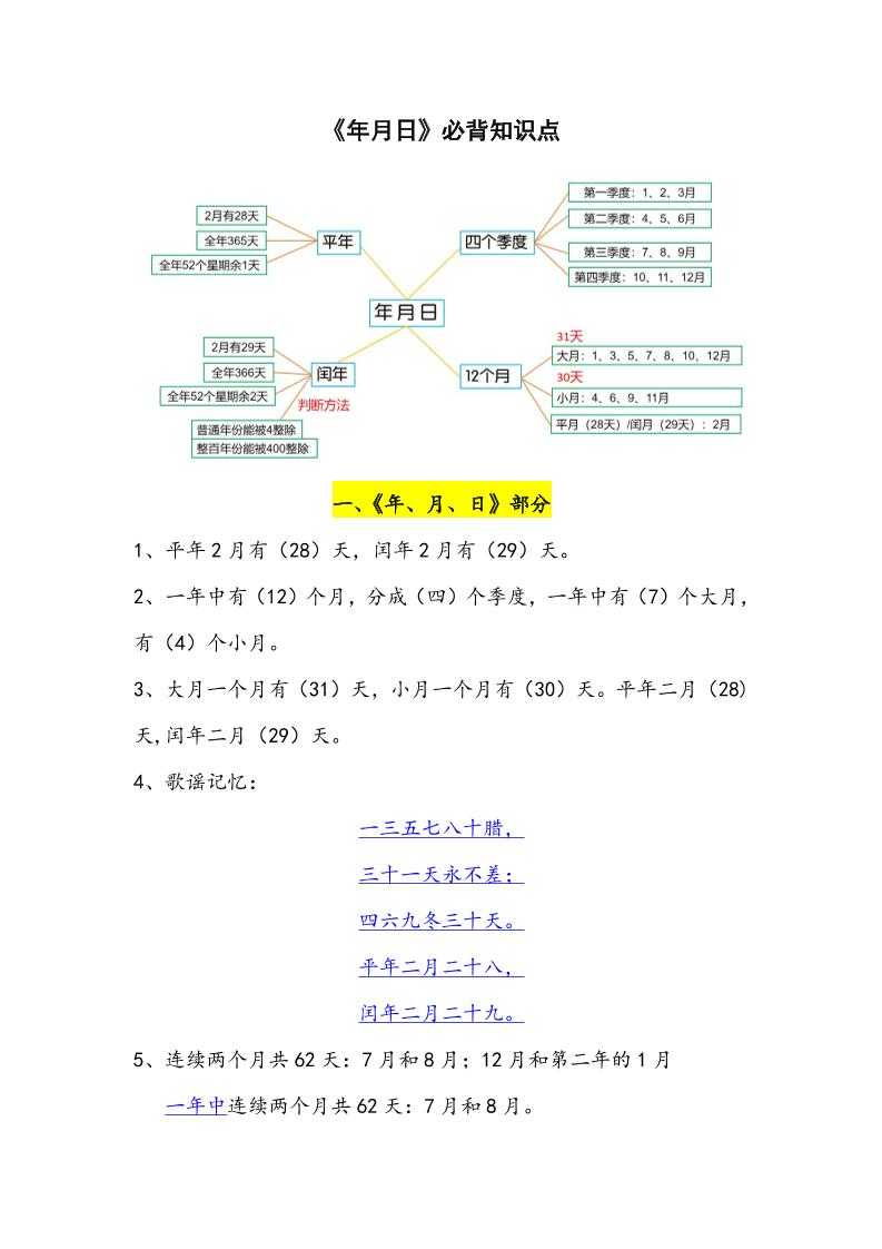 三下数学年月日必背知识点整理 三下数学年月日必背知识点整理