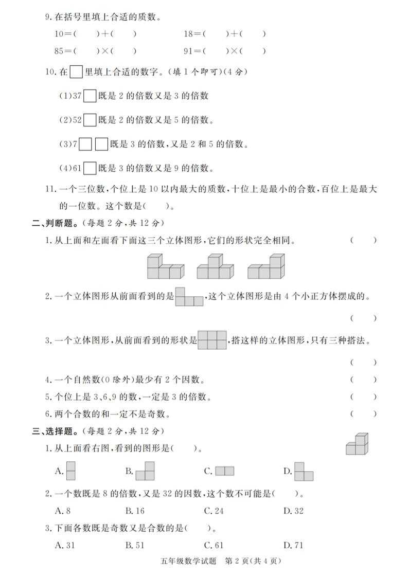 【人教版】2024-2025学年五年级数学第二学期第一月度考察卷 【人教版】2024-2025学年五年级数学第二学期第一月度考察卷