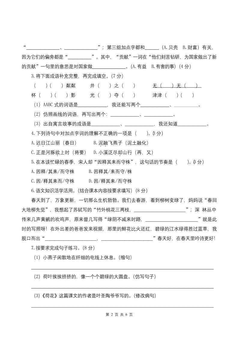 25学年三下语文第一次月考阶段质量检测卷-春游啦(含答案8页) 25学年三下语文第一次月考阶段质量检测卷-春游啦(含答案8页)