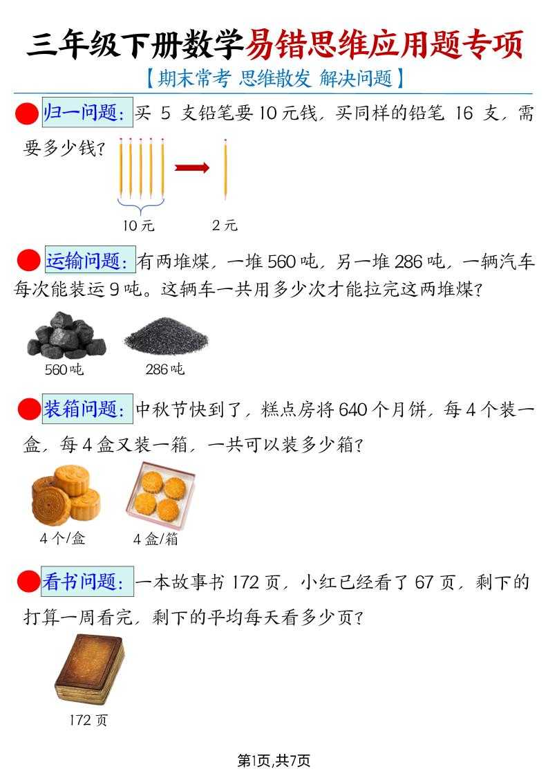 【期末常考易错思维应用题母题】三下数学 【期末常考易错思维应用题母题】三下数学