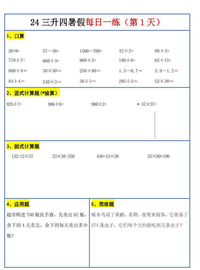 【新版】三升四暑假作业三下数学每日一练-30天 【新版】三升四暑假作业三下数学每日一练-30天
