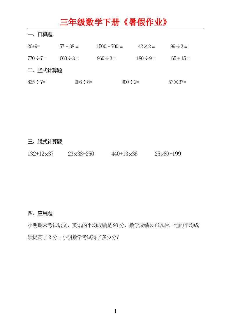 三升四数学暑假作业三下 三升四数学暑假作业三下