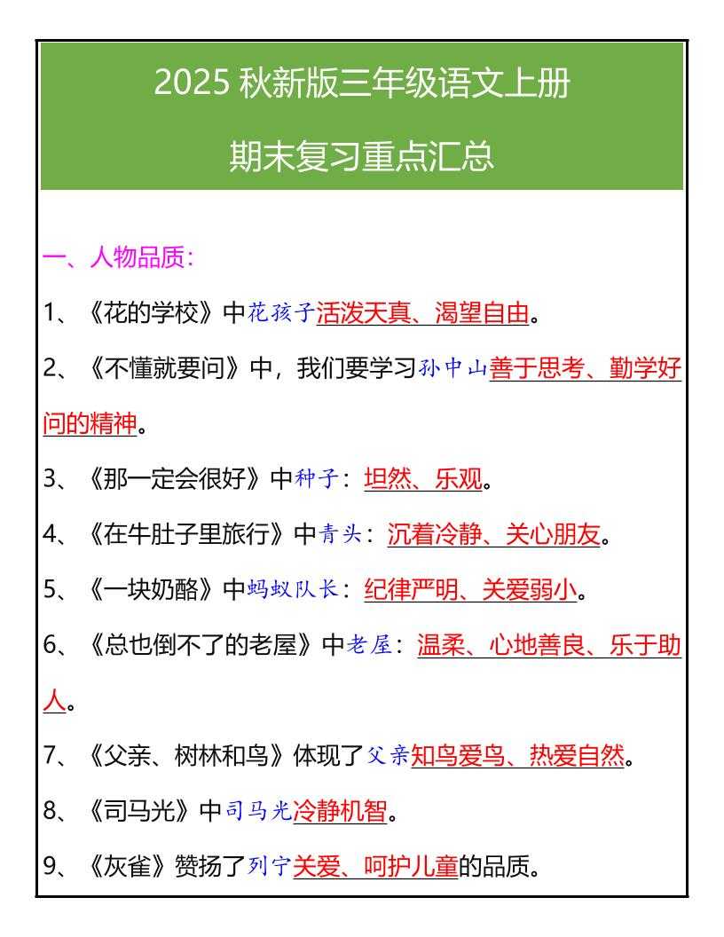 【2025秋新版】三年级语文上册期末复习重点汇总 【2025秋新版】三年级语文上册期末复习重点汇总