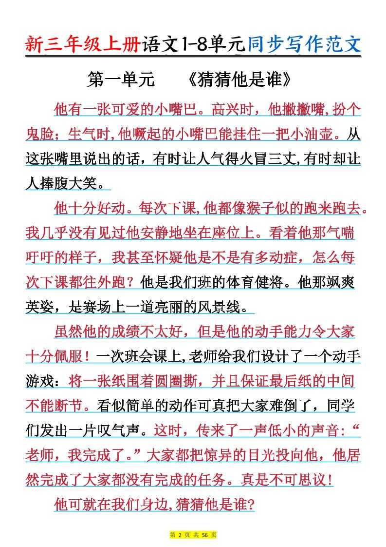 新三上语文1-8单元同步写作范文55篇(56页) 新三上语文1-8单元同步写作范文55篇(56页)