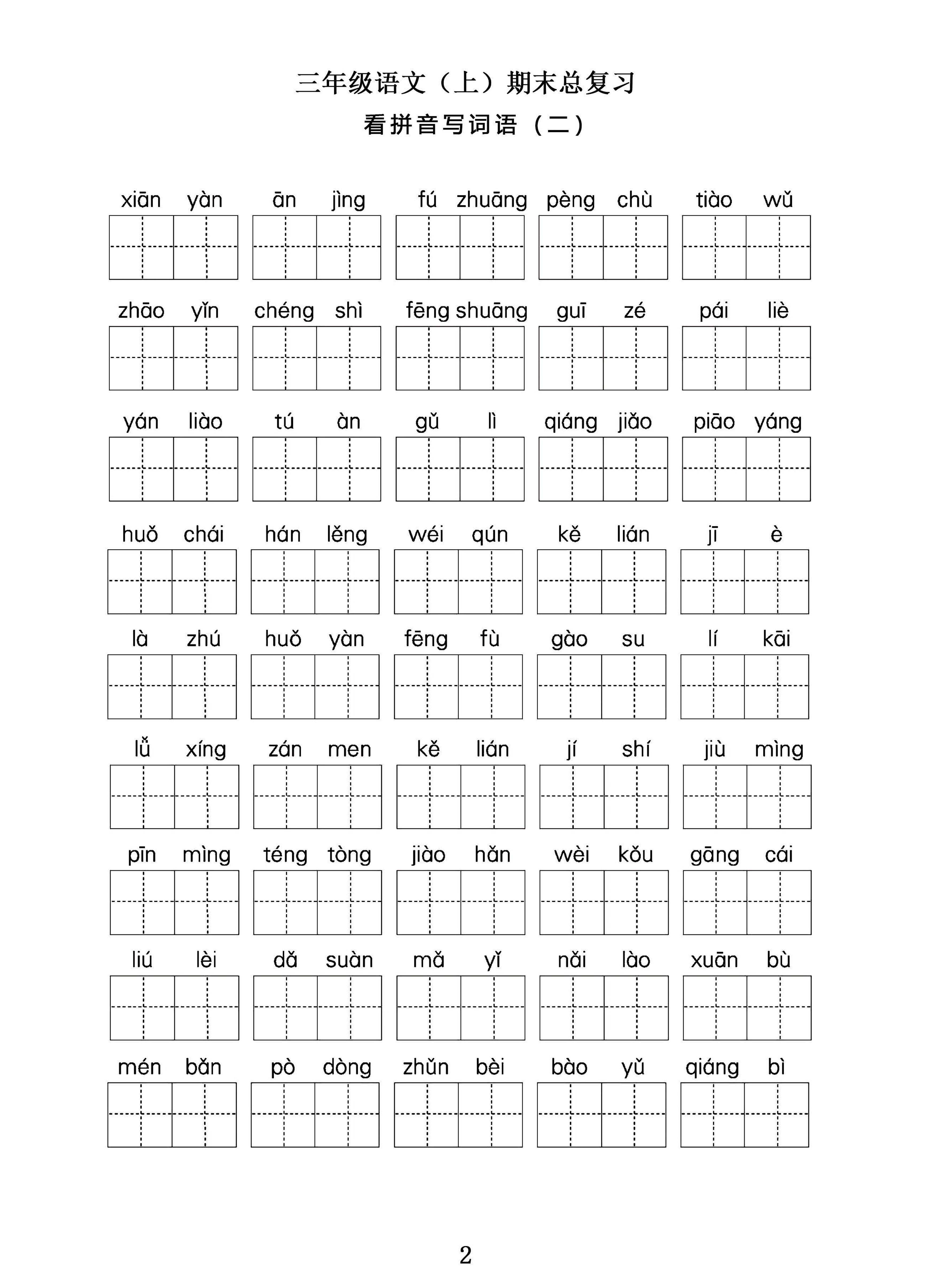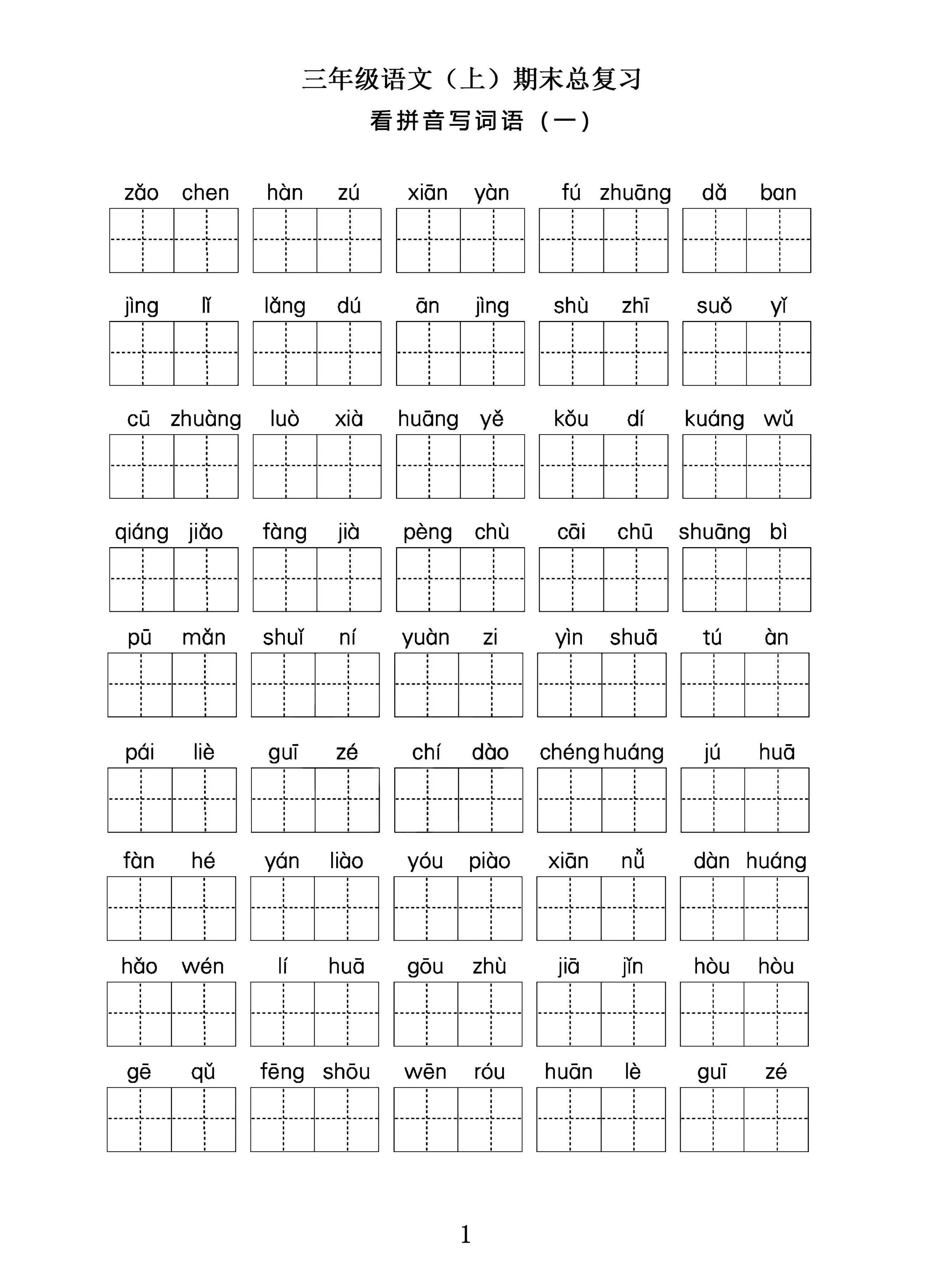 三年级语文上期末总复习——看拼音写词语。 三年级语文上期末总复习——看拼音写词语。