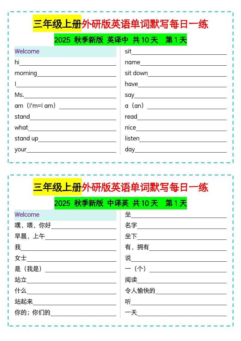 三年级上册外研版英语单词默写每日一练 三年级上册外研版英语单词默写每日一练