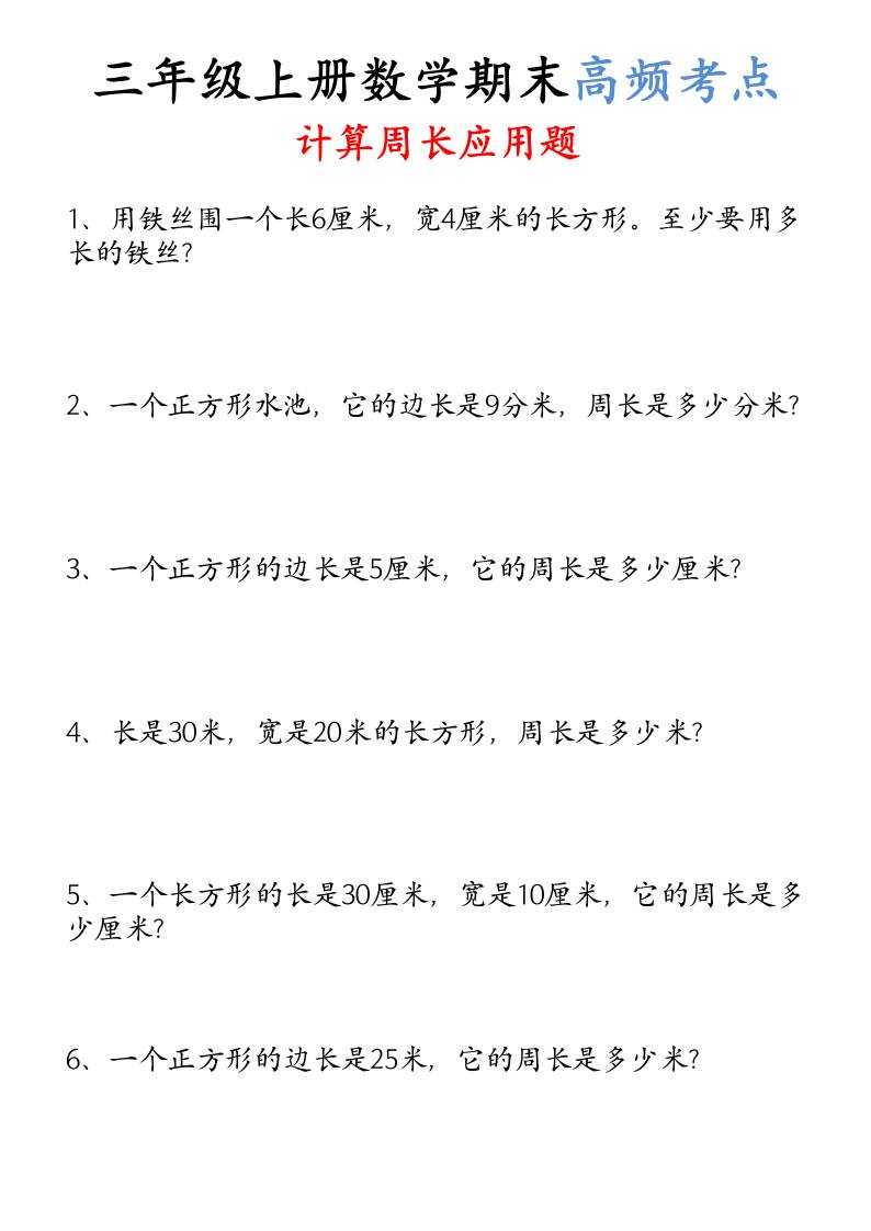 (空白)三年级上册数学必考重难点周长应用题 (空白)三年级上册数学必考重难点周长应用题