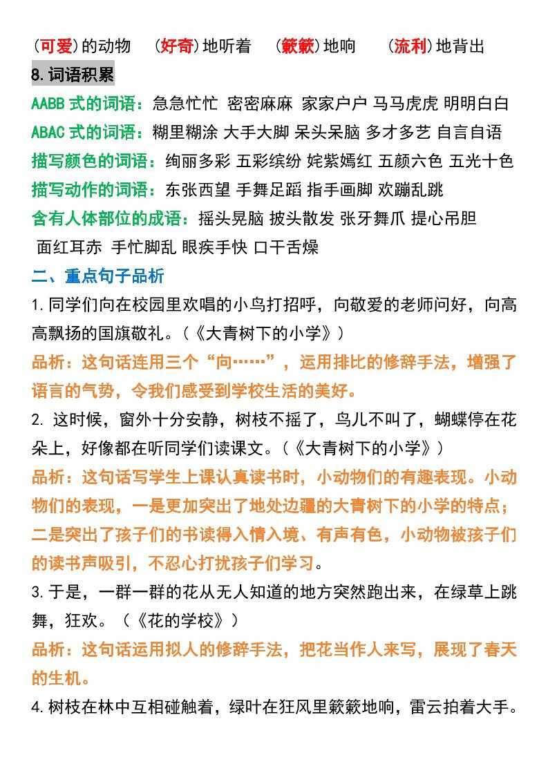 三年级上册语文1-3单元高频考点梳理 三年级上册语文1-3单元高频考点梳理