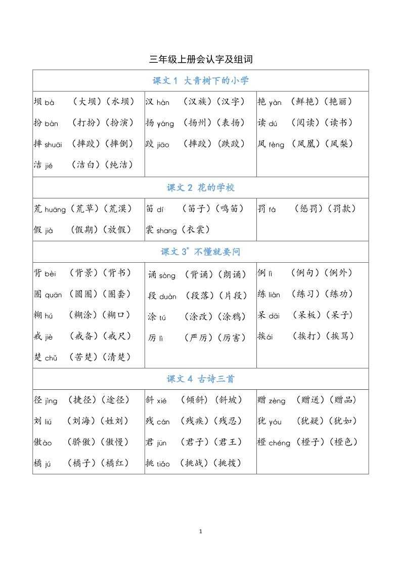 三上语文-识字表注音组词 三上语文-识字表注音组词