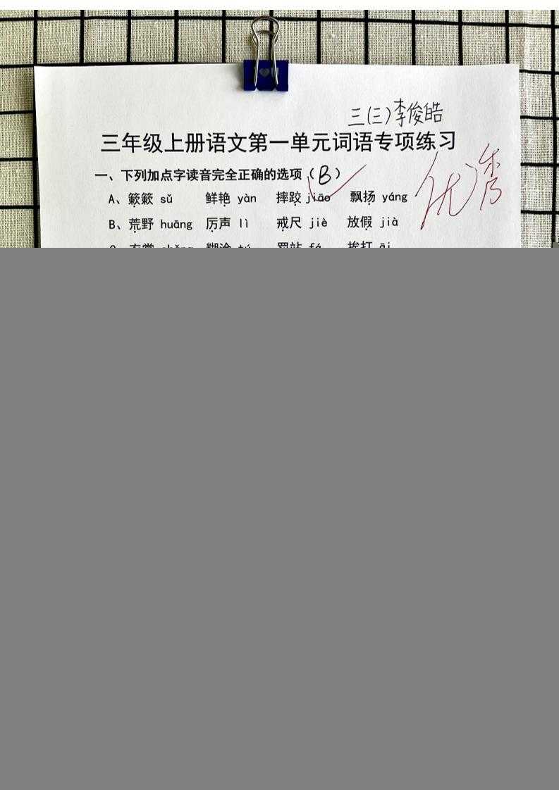 三年级上册语文第一单元词语专项答案 三年级上册语文第一单元词语专项答案