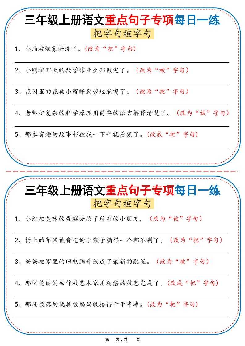 25秋三年级上册语文重点句子专项每日一练(含答案36页) 25秋三年级上册语文重点句子专项每日一练(含答案36页)