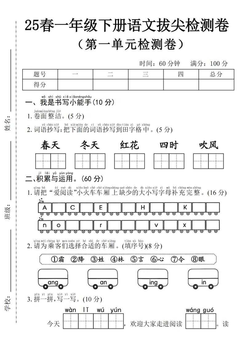 2025年春一下语文第一单元拔尖检测卷-春天(含答案5页) 2025年春一下语文第一单元拔尖检测卷-春天(含答案5页)