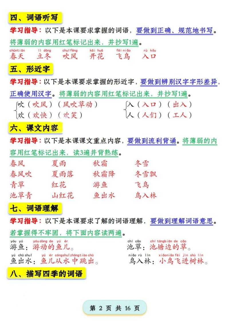 2025版一下语文第一单元学习考点梳理(16页) 2025版一下语文第一单元学习考点梳理(16页)