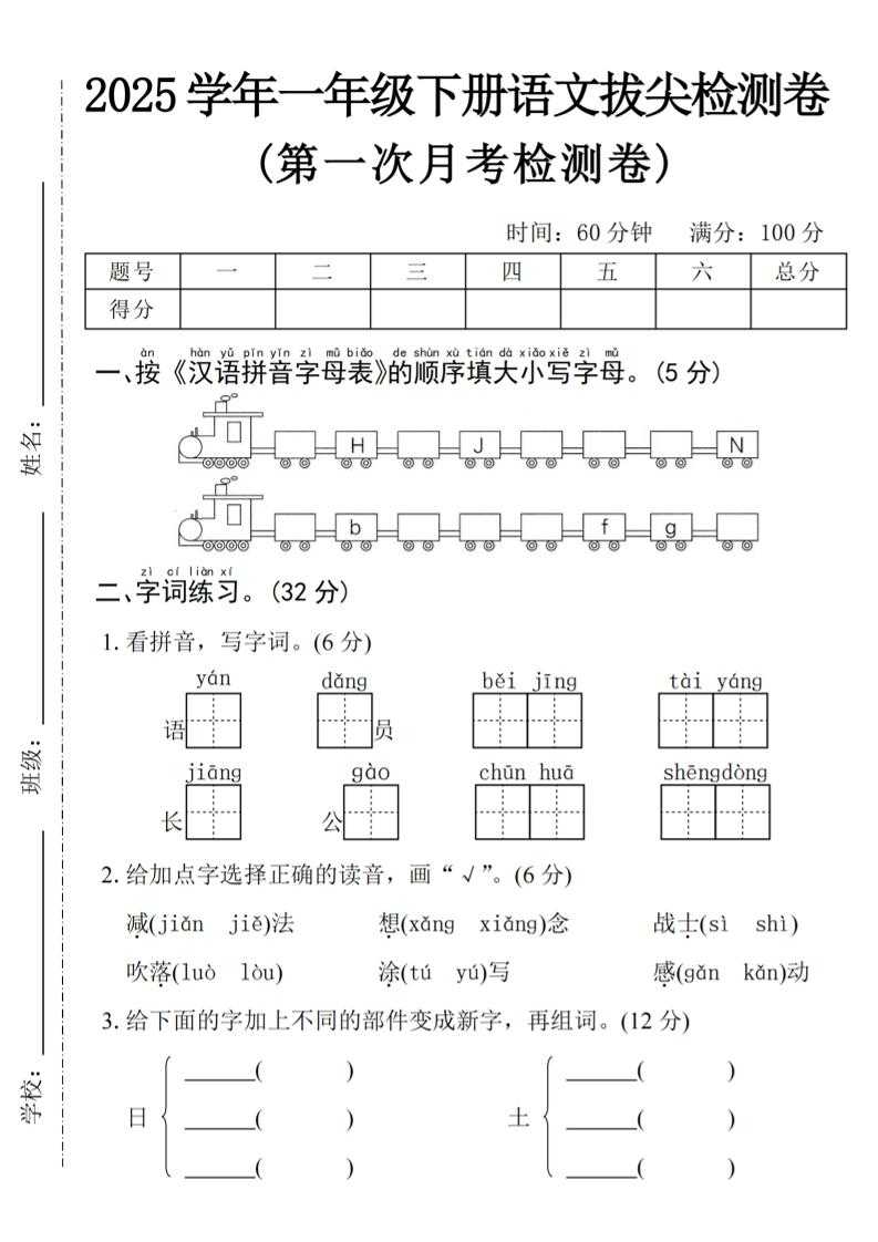 2025学年一下语文第一次月考拔尖检测卷-火车字母表 2025学年一下语文第一次月考拔尖检测卷-火车字母表