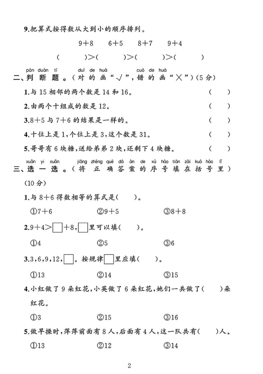 25春一下北师大版数学第一单元《20以内数与加法》测试卷 25春一下北师大版数学第一单元《20以内数与加法》测试卷