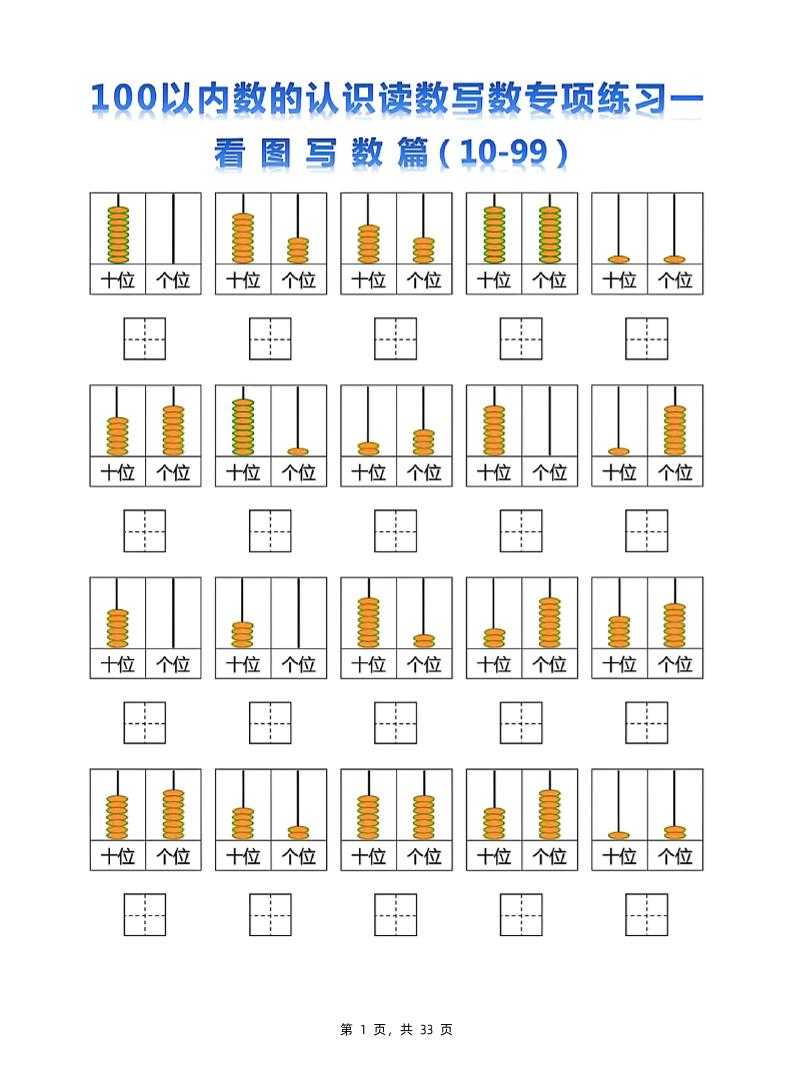 新一下数学100以内数的认识读数写数专项练习五套(33页) 新一下数学100以内数的认识读数写数专项练习五套(33页)