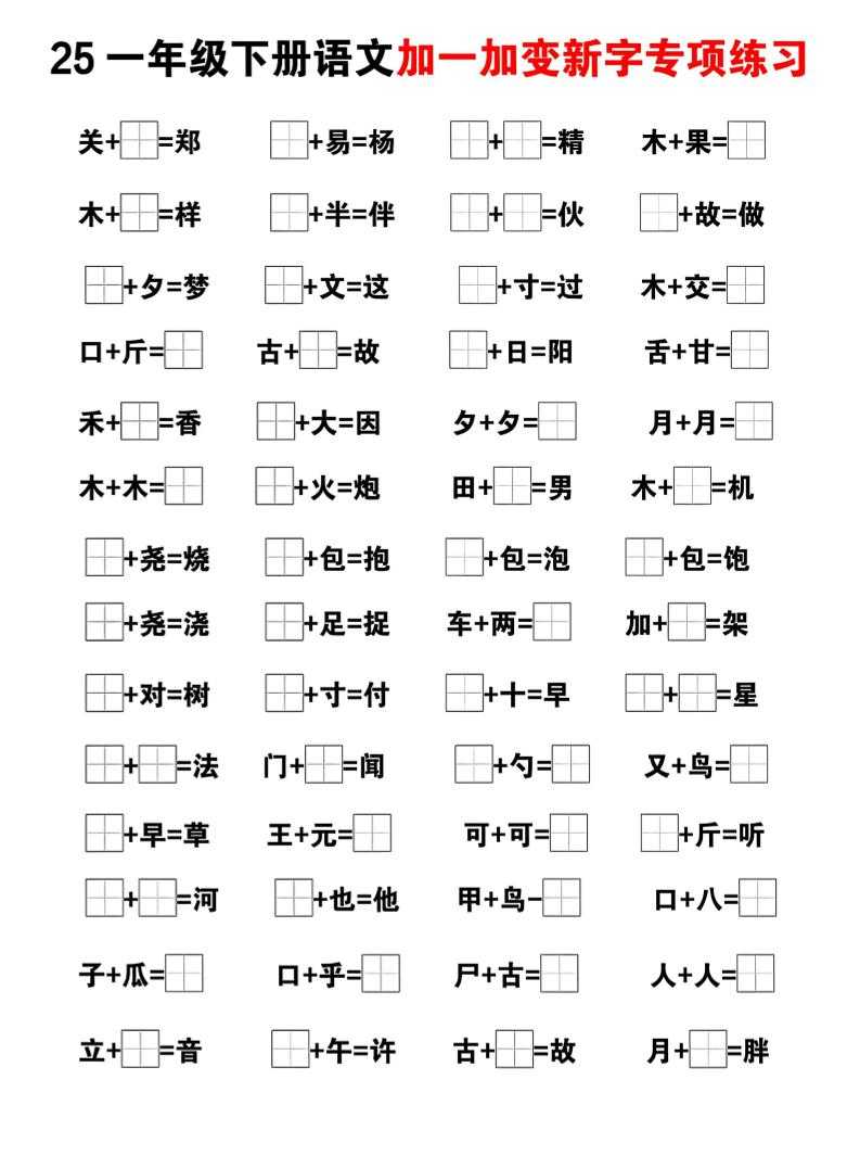 25一下语文加一加变新专项练习(5页) 25一下语文加一加变新专项练习(5页)