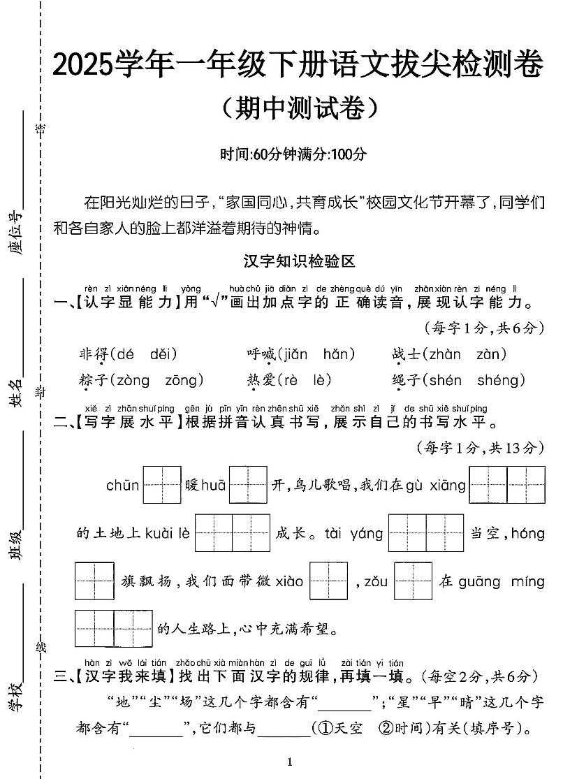 25一年级语文期中拔尖测试卷-非得(4页) 25一年级语文期中拔尖测试卷-非得(4页)