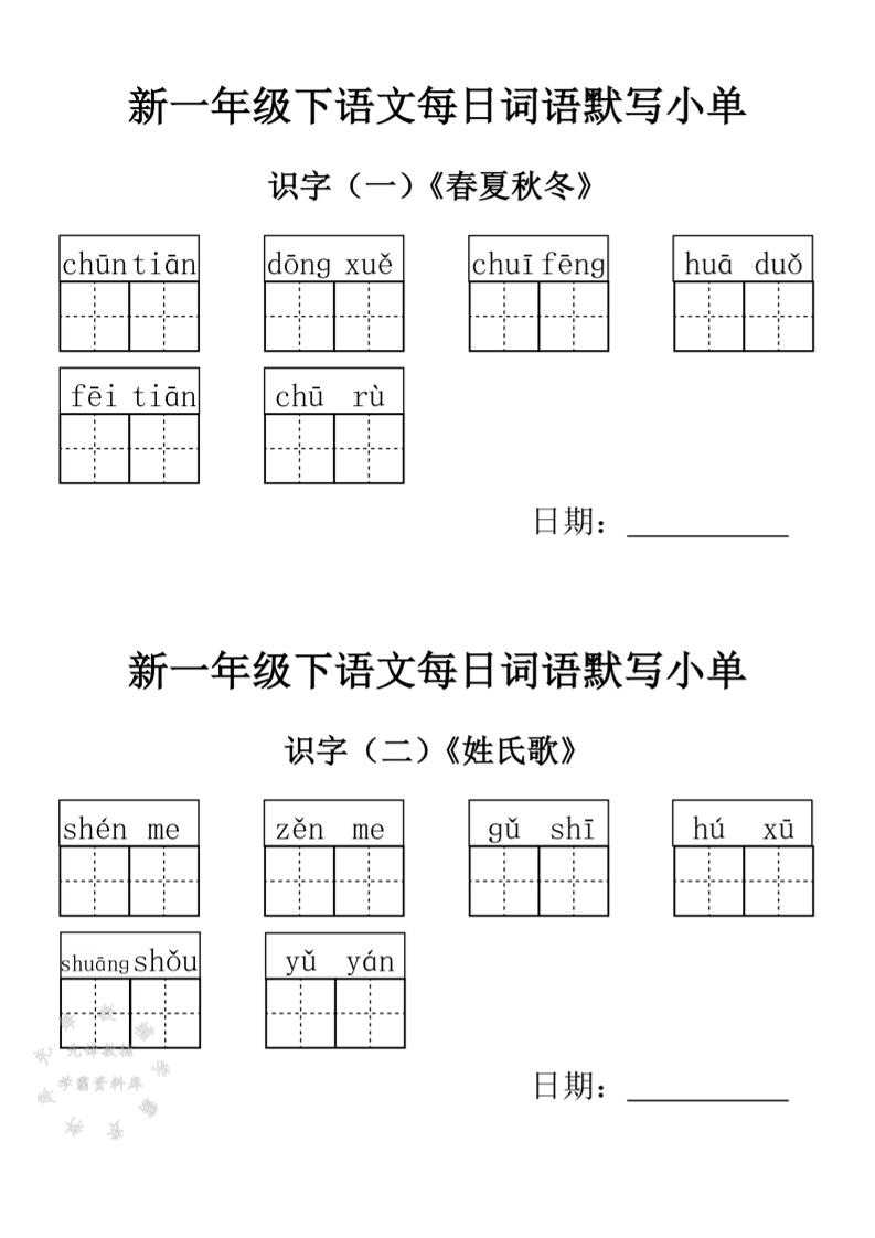 2025新一年级下语文词语默写小单 2025新一年级下语文词语默写小单