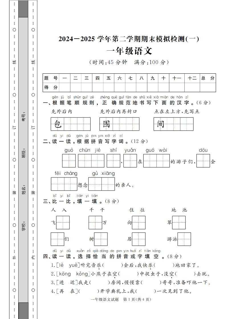 24-25学年一下语文期末模拟检测卷(共七份)含答案 24-25学年一下语文期末模拟检测卷(共七份)含答案