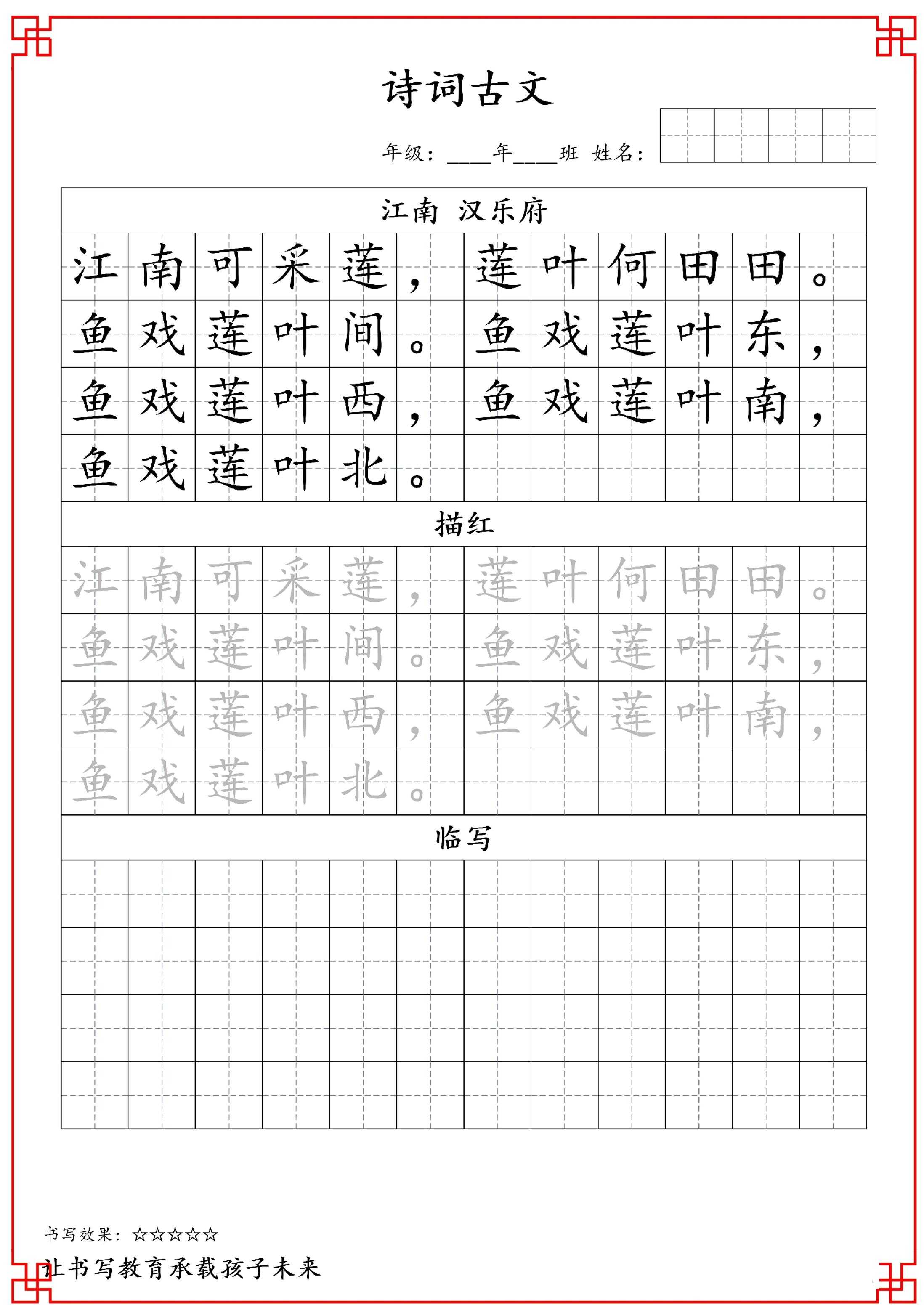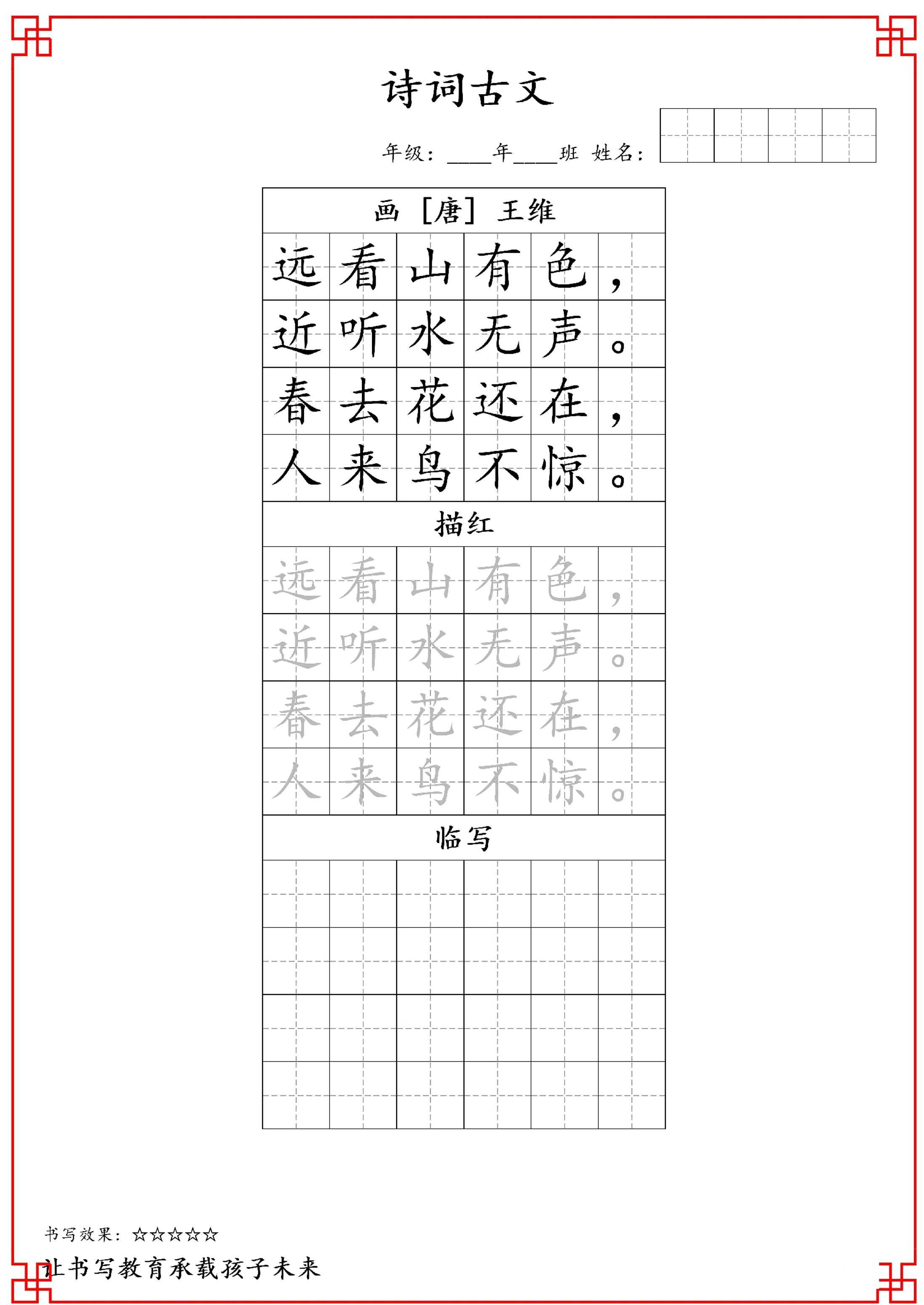 古诗字帖-一年级古诗词字帖-一上语文 古诗字帖-一年级古诗词字帖-一上语文