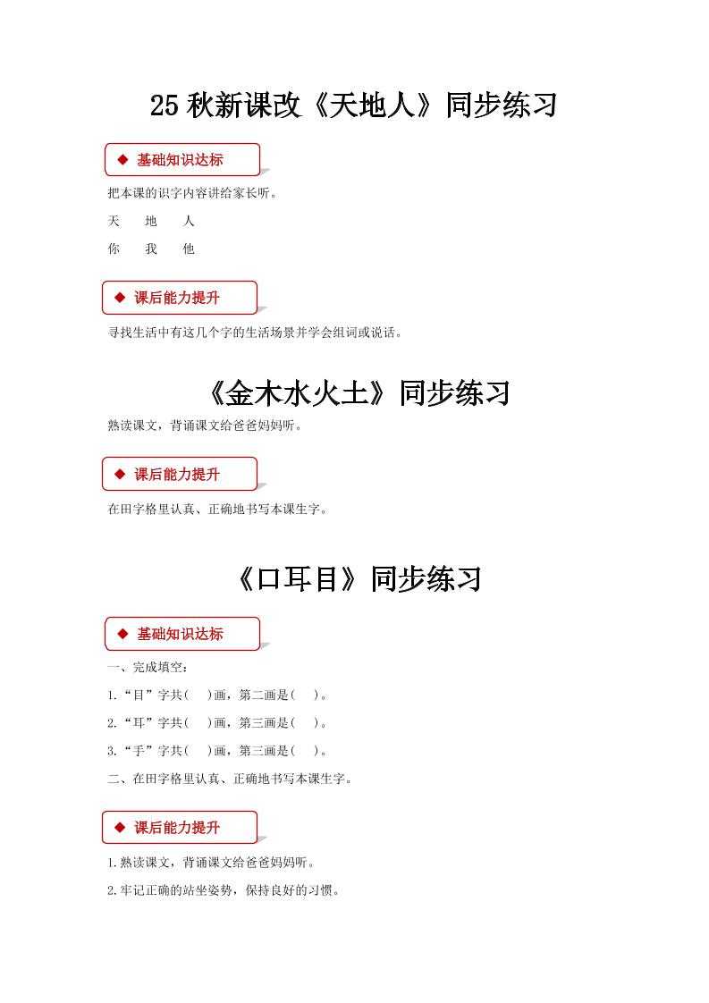 【2025秋新版】部编版语文一年级上全册同步课课练(含答案) 【2025秋新版】部编版语文一年级上全册同步课课练(含答案)