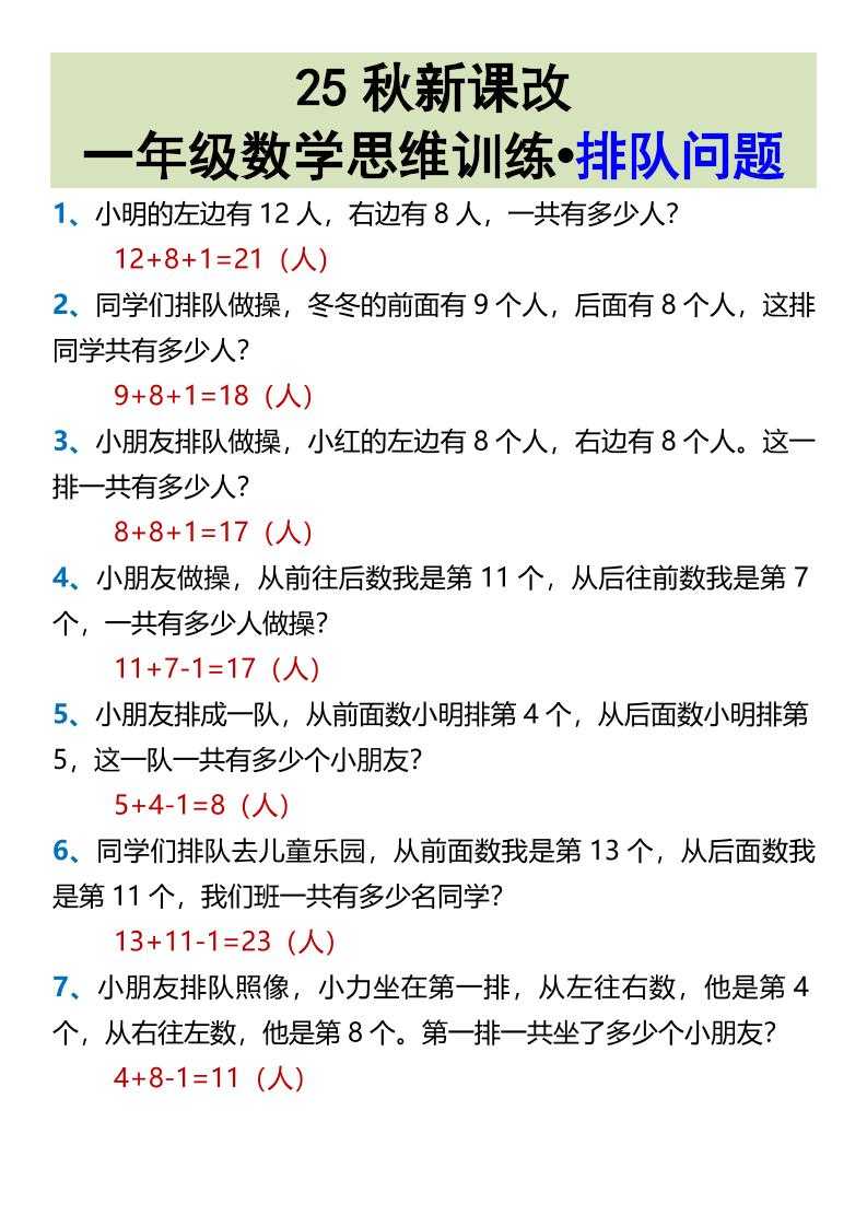 【2025秋新版】一年级数学思维训练•排队问题-一上数学 【2025秋新版】一年级数学思维训练•排队问题-一上数学