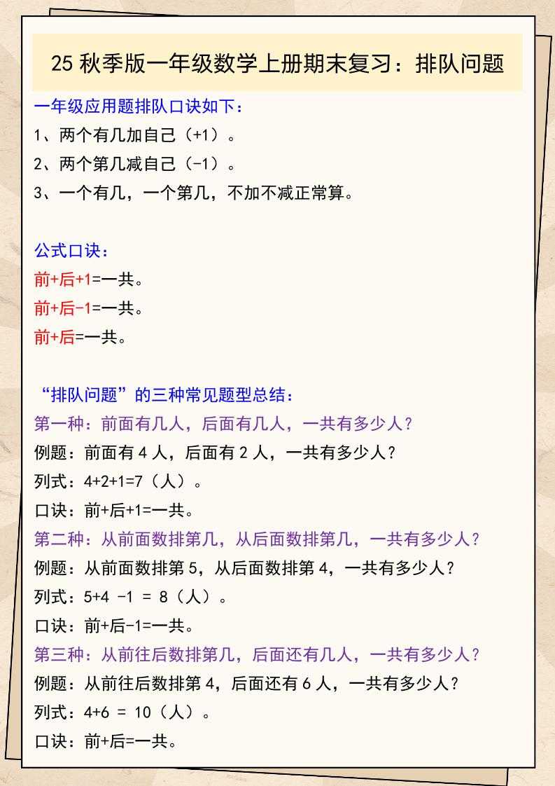 【2025秋新版】一年级数学上册期末复习:排队问题 【2025秋新版】一年级数学上册期末复习:排队问题