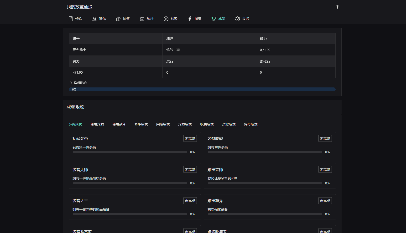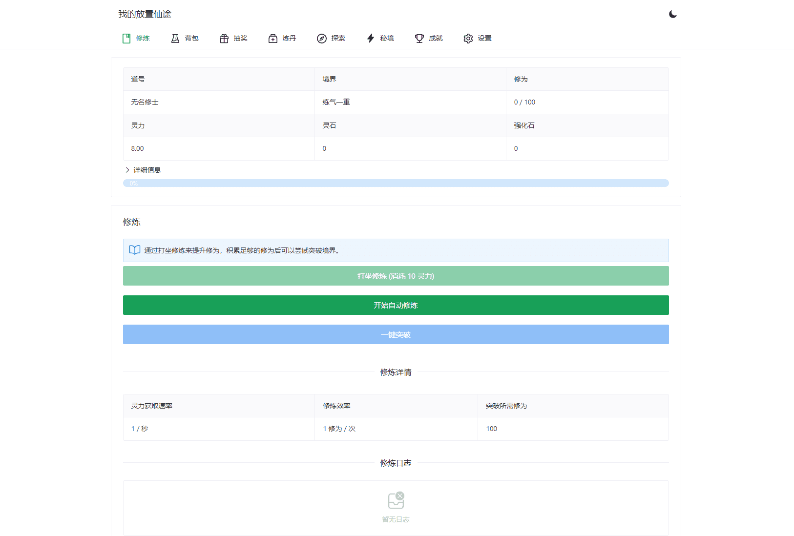 我的放置仙途 修仙类网页文字游戏源码 PC+H5自适应 带暗黑模式